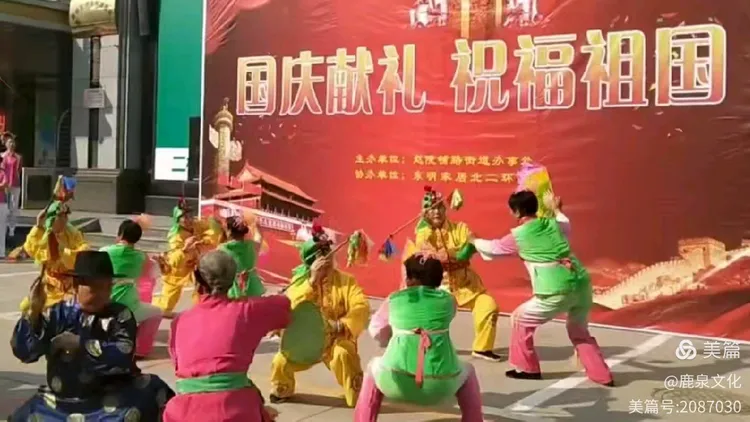 鹿泉霸王鞭技艺是流传于河北省石家庄市鹿泉区宜安镇宜安村的传统舞蹈,起源于元代,传承六代。道具以一米竹鞭嵌24铜钱(对应二十四节气),装饰红绸、响铃,通过拍、打、压、扛等动作击打身体部位,配合唢呐锣鼓与扇舞,形成刚健欢快的“男女配对”队列表演,兼具民俗娱乐与强身功能。霸王鞭作为传统民俗艺术的载体,既保留了传统民俗特色,又体现了团结、和谐的民族精神,象征民族文化的融合和红色文化的传播。
